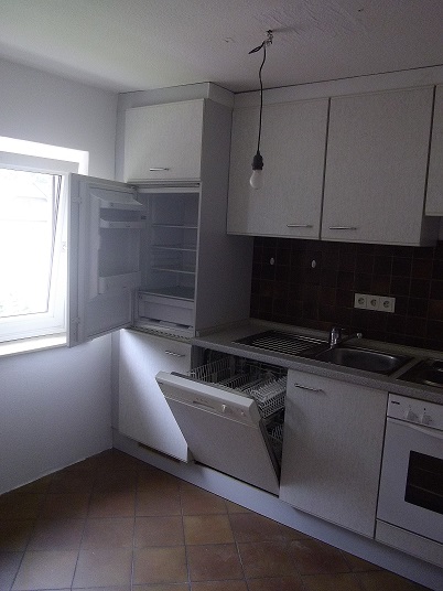 Direkt an den Essbereich grenzt die klassische Küche, die ausreichend Platz für eine Esstisch bietet. Vor der Küche befindet sich ein praktischer Hauswirtschaftsraum, der nicht nur Platz für Waschmaschine und Trockner bietet, sondern auch zusätzlichen Stauraum bereitstellt – ideal für eine ordentliche und entspannte Alltagsorganisation.