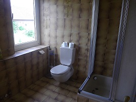 Vom Essbereich gelangen Sie in den privaten Flügel der Wohnung. Hier finden Sie ein Duschbad mit zwei Waschtischen, viel Tageslicht durch die Gaube sowie ein angenehmes Raumgefühl. Das große Schlafzimmer bietet ausreichend Platz für Ihre Schlafzimmermöbel und lädt zum Entspannen ein. Ein kleineres Zimmer eignet sich hervorragend als Büro, Abstellraum oder gemütliches Kinderzimmer – flexibel nutzbar nach Ihren Bedürfnissen.