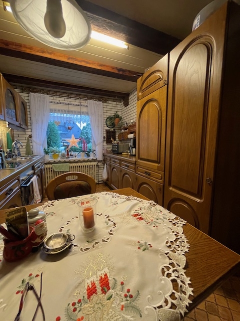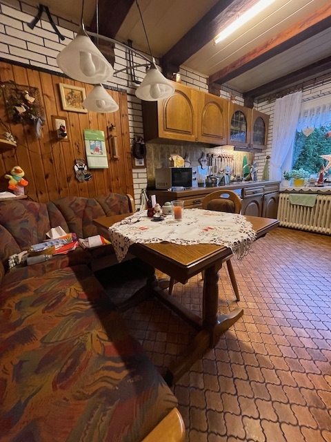 Der Wohn- und Essbereich überzeugt durch einen sehr gelungenen Zuschnitt und lädt dazu ein, eine gemütliche Wohlfühloase zu gestalten. Besonders schön ist der direkte Zugang zur südlich ausgerichteten Terrasse mit Blick auf das großzügige Grundstück – perfekt für gesellige Grillabende mit Familie und Freunden, während die Kinder im Garten spielen. Die vorhandene Einbauküche bietet ausreichend Platz und verfügt zudem über eine gemütliche Sitzecke.