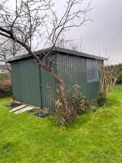 Das weitläufige Grundstück bietet eine breite Auffahrt, auf der bequem bis zu vier Fahrzeuge Platz finden. Eine Garage schützt Ihr Auto, und direkt nebenan befindet sich eine kleine Werkstatt. Zudem steht ein Gartenhäuschen für die Unterbringung von Gartengeräten zur Verfügung.