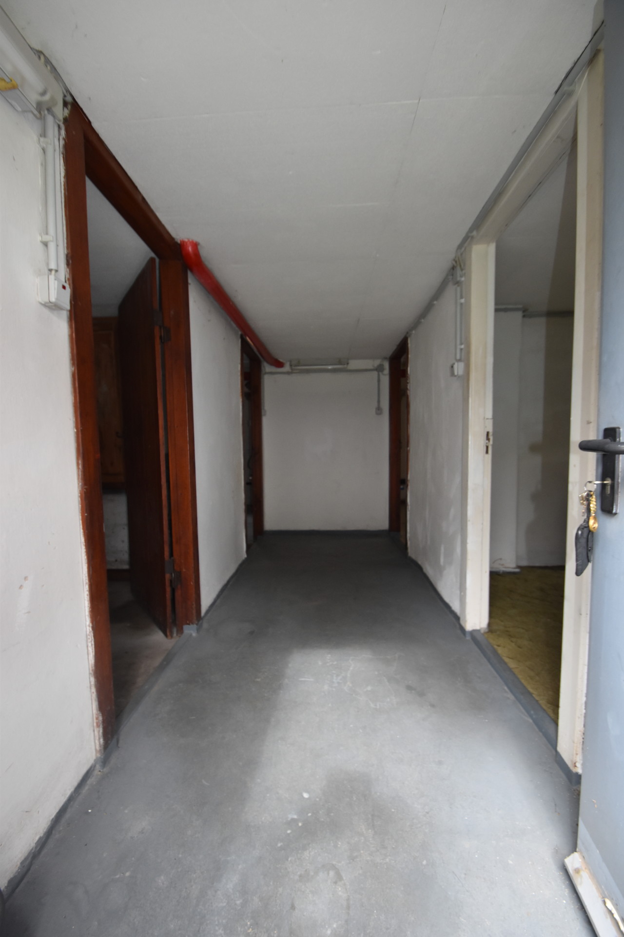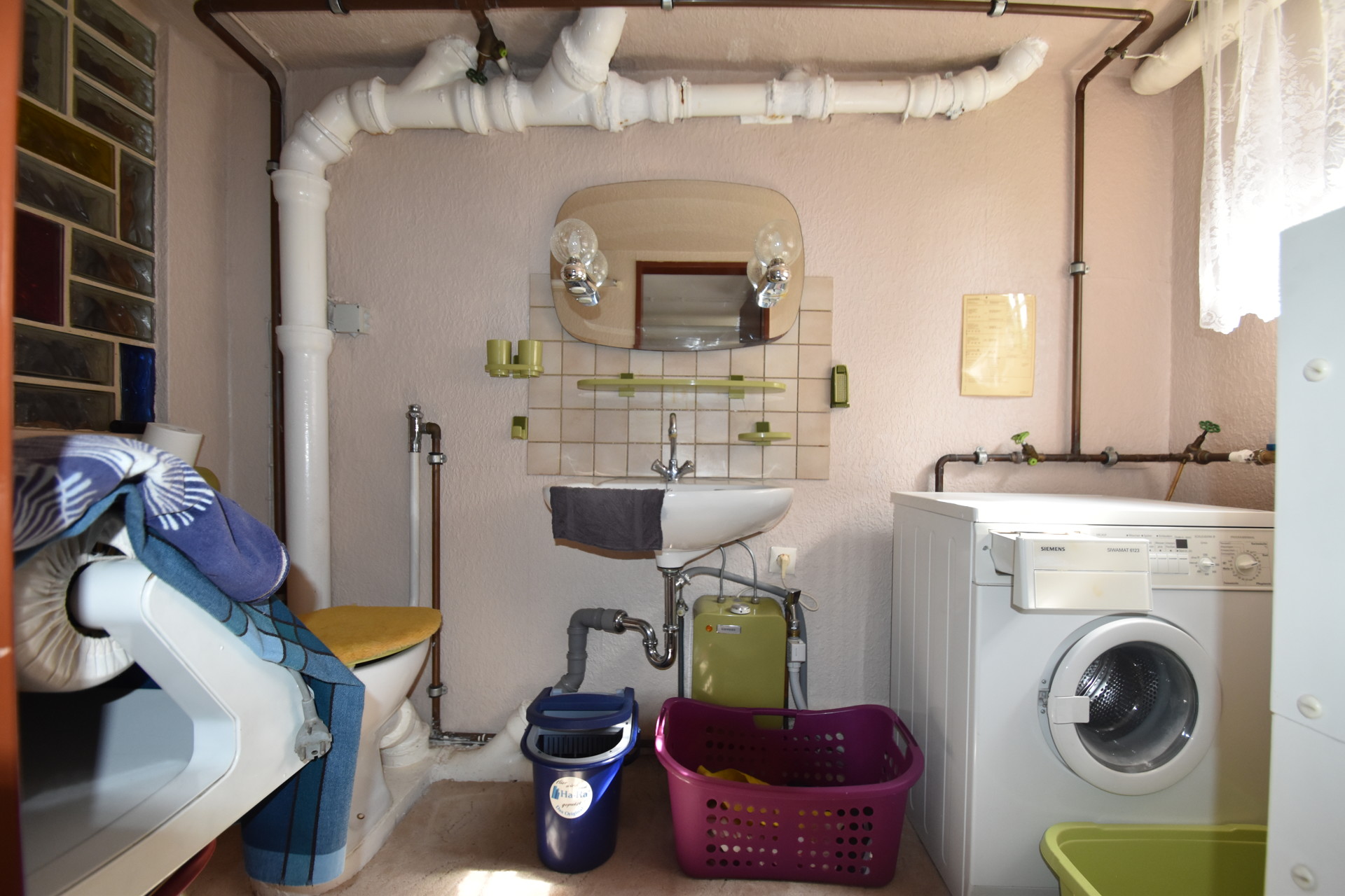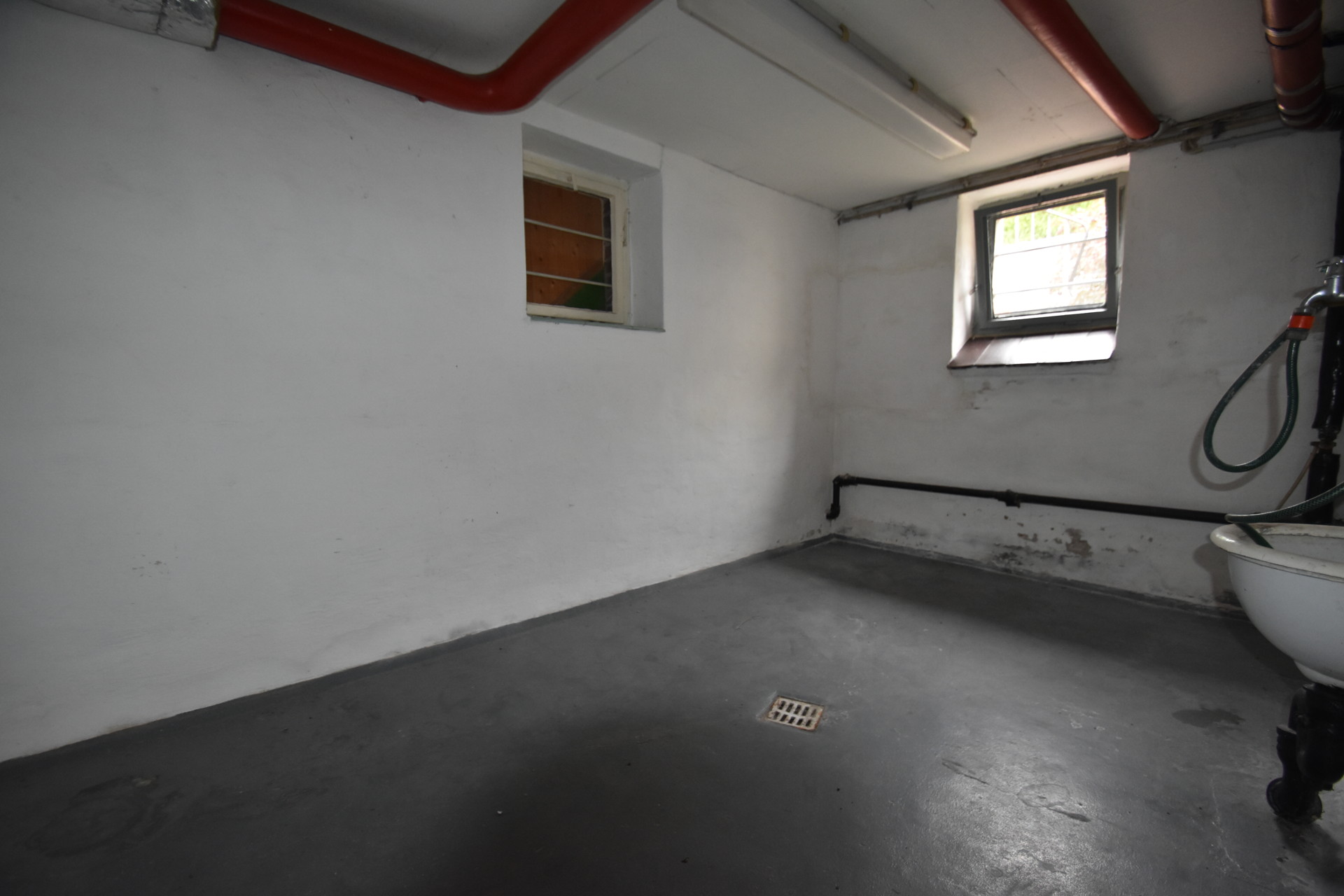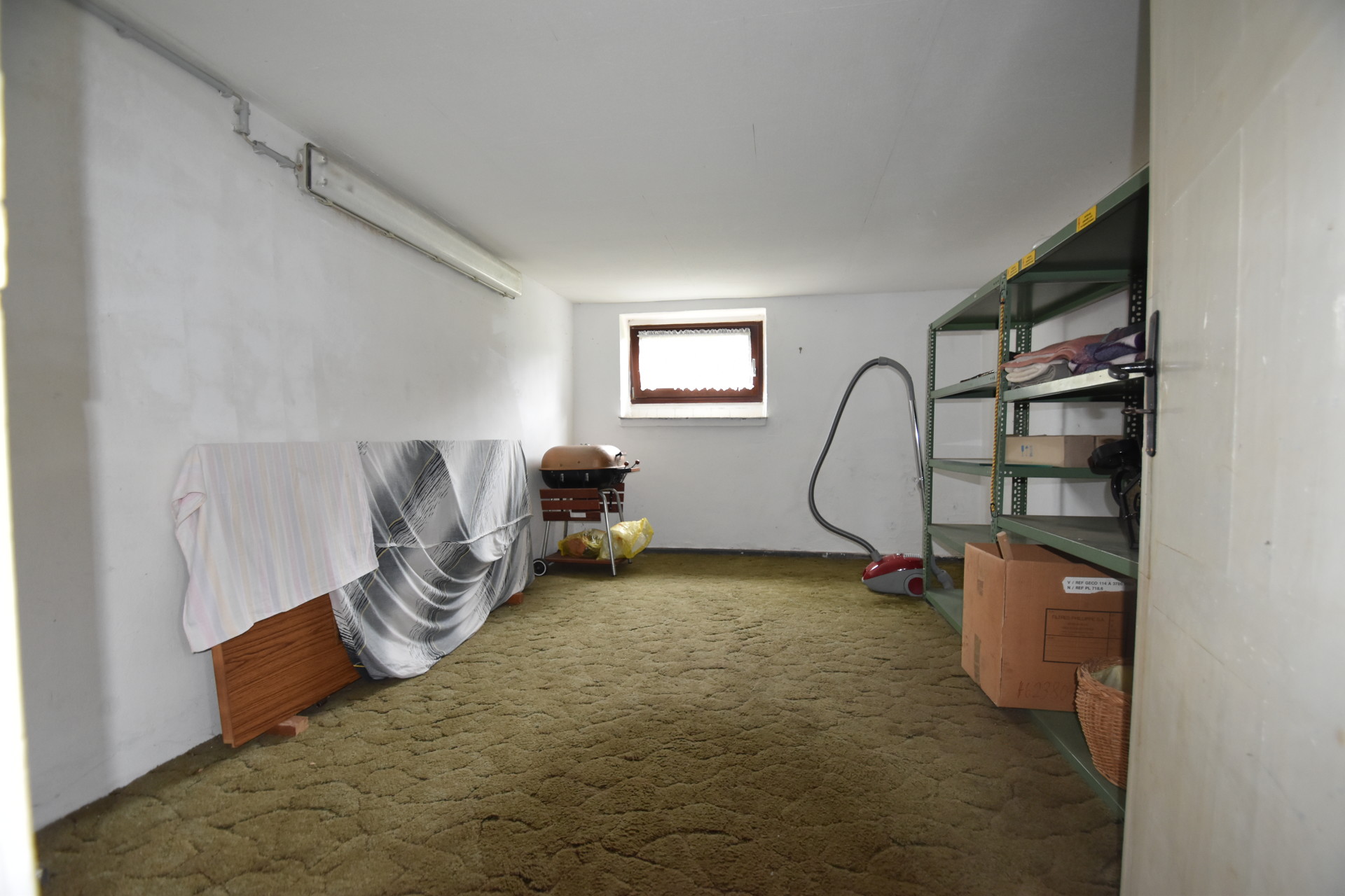 Der Keller dieses Bereichs ist von außen zugänglich, da der ursprüngliche Eingang mit Glasbausteinen zugemauert wurde. Er bietet vier Räume für Lagerung oder individuelle Nutzung. Im Garten befindet sich ein Garten-/Gerätehaus, das nicht nur Platz für Geräte bietet, sondern auch die Wasseruhr und die automatische Bewässerung des Gartens beherbergt.