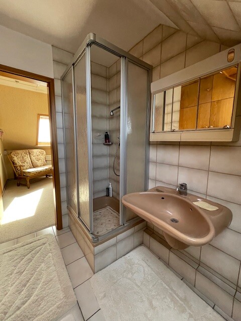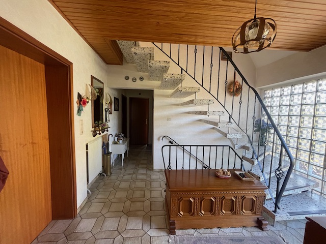 Erdgeschoss: Diele mit ausreichend Platz für eine Garderobe heißt Sie willkommen. Von der Diele aus gelangen Sie über eine massive Treppe ins Dachgeschoss und in den Keller sowie zu allen Räumen des Erdgeschosses. Die Küche mit einer Einbauküche des Baujahres bietet viel Platz für gemeinsames Kochen und gemütliches Beisammensein. Das Wohnzimmer präsentiert sich hell dank großzügiger Fensterelemente und führt zur Südterrasse mit Markise – ideal für sonnige Stunden im Freien. Das Elternschlafzimmer ist großzügig bemessen und bietet ausreichend Platz für Ihre Möbelkombinationen. Zusätzlich steht ein weiteres Zimmer als Kinderzimmer oder Büro zur Verfügung. Abgerundet wird das Erdgeschoss durch das Wannenbad mit Fußbodenheizung sowie der Diele, die ein behagliches Ambiente schafft.