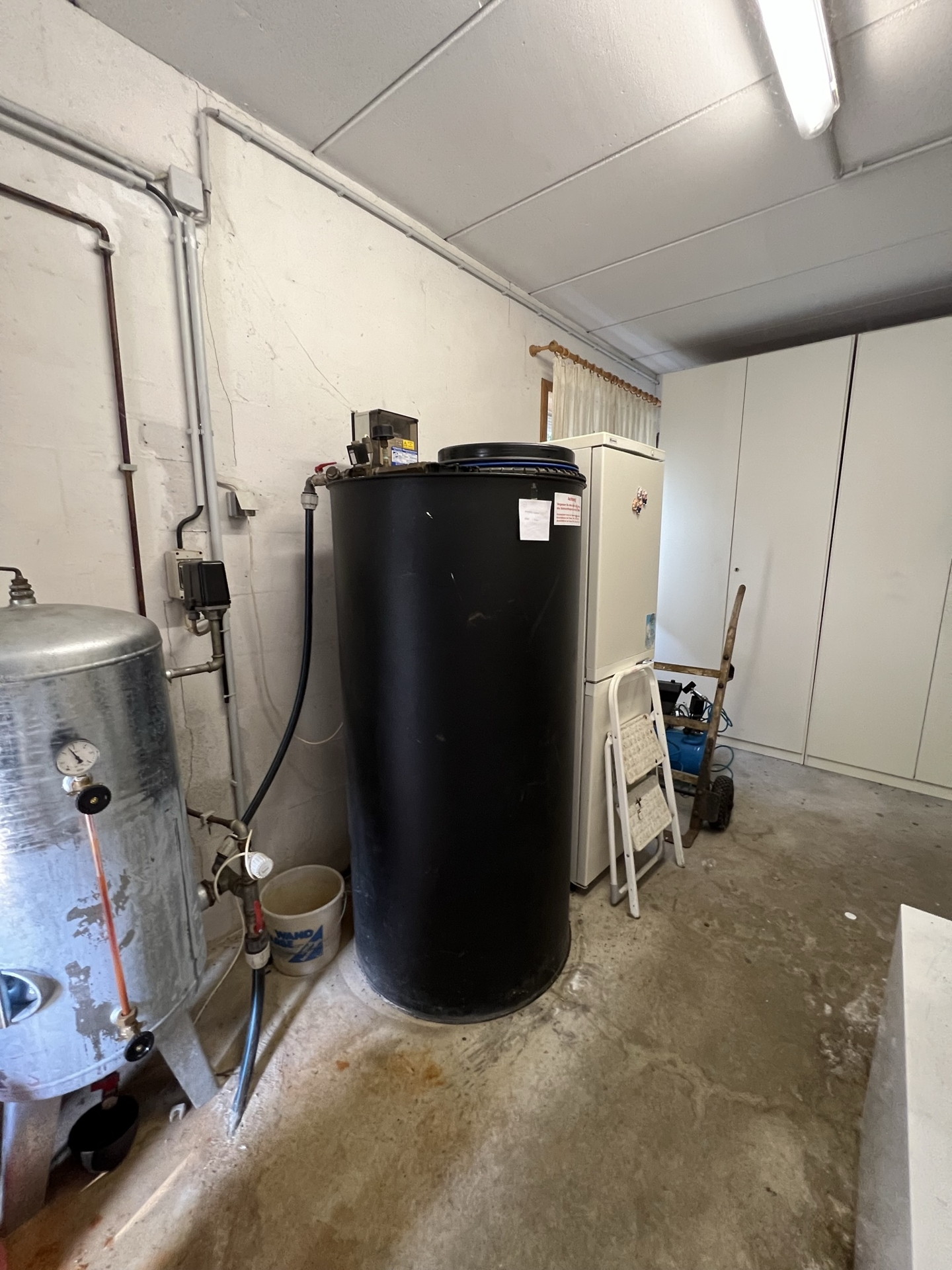 Die Wasserversorgung erfolgt über einen hauseigenen Brunnen. Eine Anbindung an das öffentliche Wasser- und Abwassernetz besteht nicht; stattdessen ist eine hofeigene Kläranlage mit Klärteich vorhanden.