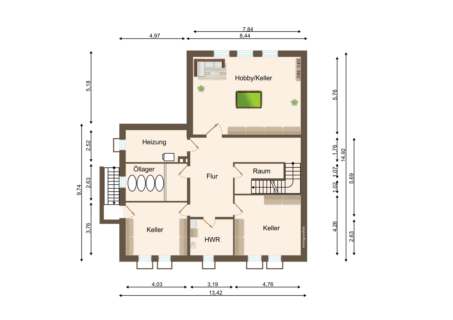 Der voll nutzbare Keller mit ca. 2,30 m Deckenhöhe bietet enorme Flächenreserven. Teilweise beheizte, helle Räume, ein Wirtschaftsraum sowie ein direkter Gartenzugang unterstreichen die vielseitigen Nutzungsmöglichkeiten. Eine zentrale Staubsaugeranlage erhöht zusätzlich den Wohnkomfort.